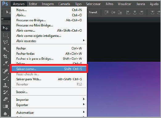 Em seguida, vá em "Arquivo" e em seguida "Salvar como"